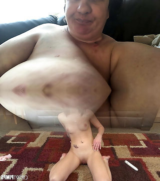 Monster massive bitch with huge boobies get hard dick and eat cum