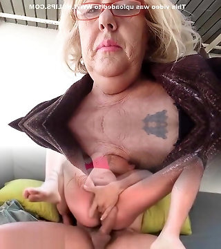 Grannie Leona C. bounces on his cock with her fat figure
