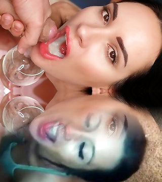 She takes ALL of our jizz-shotguns and a Creampie