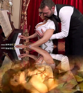 Hot Milf with meaty mounds in latex uniform and with sunglasses is being dirty