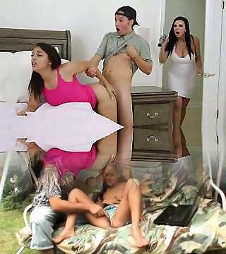 Samara and Bony get to grope and deep-throat each other's pussies while their stepdad is in the douche. Part 1