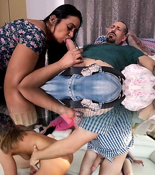 Naughty Lad Slurps & Pummels Juicy Pussy Of His Fit Bubble-assed Latina Stepmom, While His Dad Is Busy