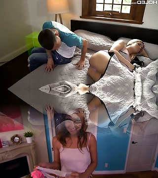 Stepsister Aria Valencia spying on stepmom Lolly Dames having sex and brother also gawped
