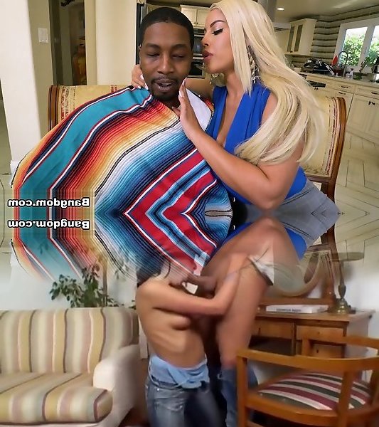 Busty blonde transgirl Karen enjoys playing with her fat cock indoors