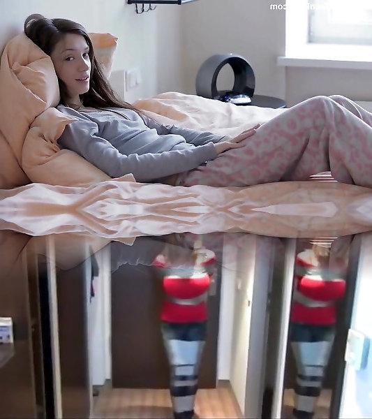 Busty blonde transgirl Karen enjoys playing with her fat cock indoors