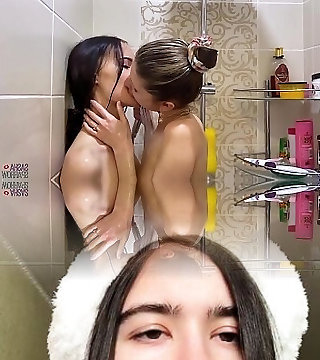 Two Hot Girlfriends Play in Bathroom - Lesbian Caresses