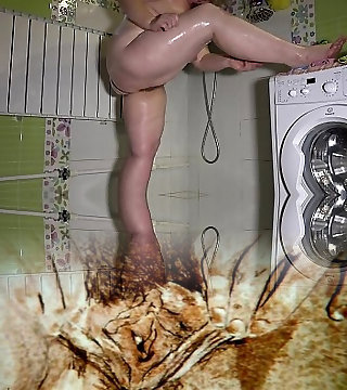 The husband put a hidden camera in the shower to spy on his wife. A cougar with a wooly pussy and xxl breasts is washed at home.