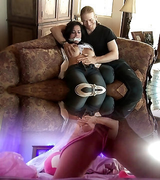 Submissive Latina MILF Jasmine Jae roped up and pussy and arse abused