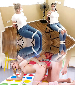 Slender teen got tied up with her legs spread wide and enjoyed getting her pussy licked