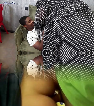 A fat ebony lady arches over for her black man