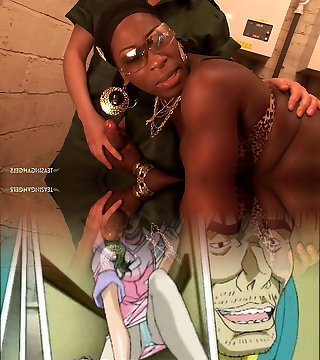 Naughty black head with thick butt Bambi Black blows and rides powerful cock