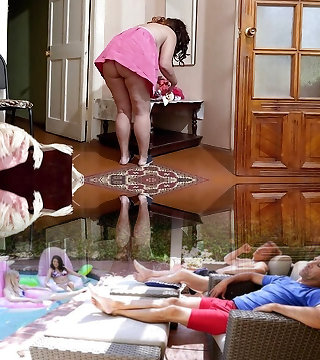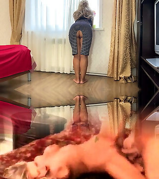 Busty mature milf maid clean in mini dress - Mini Skirt - BBW SSBBW cleaning nymph flashing yam-sized bum close up panties to the side