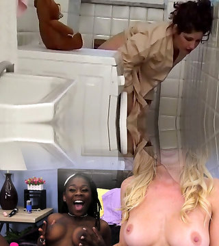 Sexy housewife masturbates in the bathroom as she is astonished and invited into wild sex with a hefty dick to stick