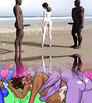 White Girl Gets Blacked On The Beach By Two Bbcs
