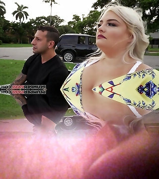 Fat blonde cock teaser, Tiffany Star is giving a head to a handsome guy she really enjoys