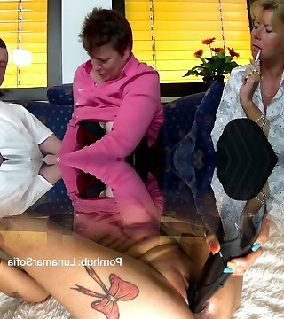 Kinky women with ample bod are having a threesome with a insatiable midget and sucking his dick