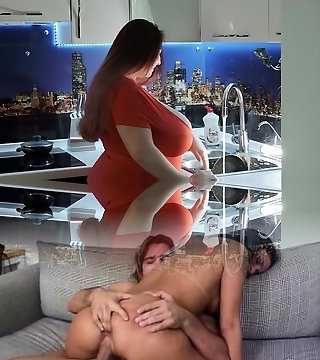 Stepson fucked his stepmom with his giant penis when step-dad was not home