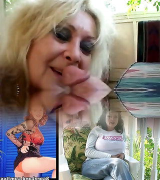 Ugly older blonde finger-fucks young babe, then babe sucks