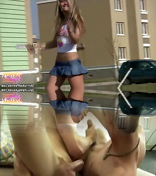Diminutive Upskirt Teasing Fat Cock Gaping Pussy Broad Open Close Up